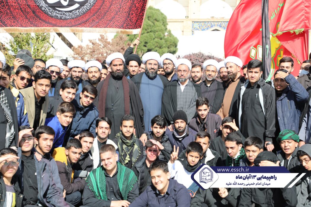 حضور پرشور طلاب و اساتید حوزه علمیه امام صادق(ع) چهارباغ در راهپیمایی ۱۳ آبان