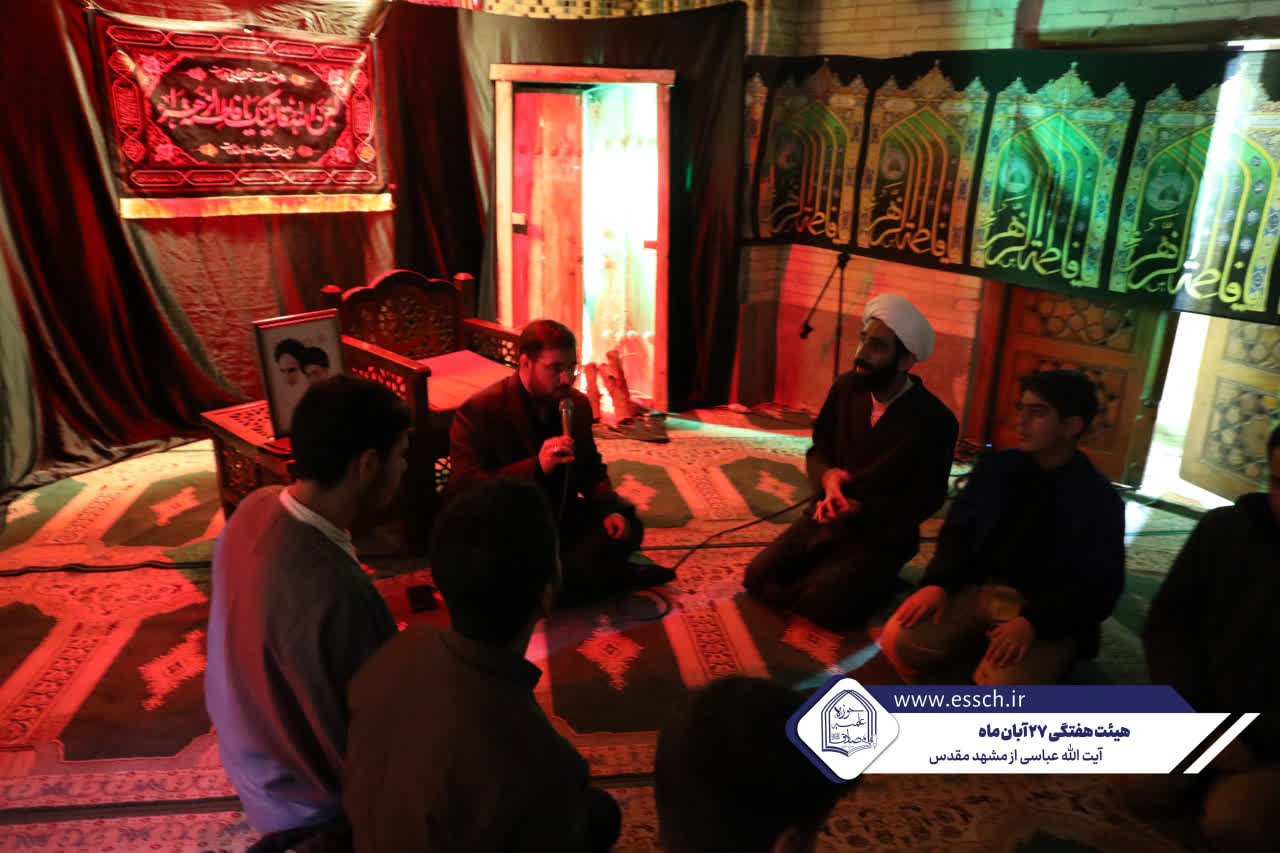 مراسم معنوی هیئت هفتگی به مناسبت ایام شهادت حضرت صدیقه طاهره سلام‌الله‌علیها، با حضور پرشور عاشقان اهل‌بیت برگزار شد.
